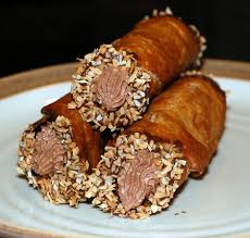 En hier volgt voor jullie een aantal varianten cannoli. Vulling kan ricotta kaas zijn (verrukkelijk) maar ook allerlei andere smeerseltjes zoals vanille creme en allerlei anvullingen/versierselen zoals die met pistachenoten (de tweede) mmmmm. Het is ook wel erg zoet, maar dan wel verhouding. Je proeft de rest nog. Sinasappelsap is van zichzelf al zoet daar moet je geen suiker meer in doen.
